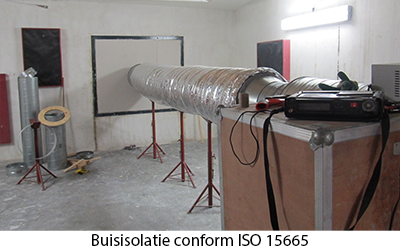 Het verschil in het geluidvermogen-niveau bij de twee situaties is de maat voor de geluiddemping (invoegdemping of insertion-loss) van de demper.
