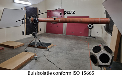 Onder invoegverlies, of “insertion-loss”, verstaan we de reductie van het afgestraalde geluidniveau door een bekleding of omkasting. De metingen worden uitgevoerd in de nagalmkamer, dit is onze meetruimte die door zijn afmetingen en volume het meest geschikt is om ook in de lage tonen met een goede nauwkeurigheid het afgestraalde geluidniveau te meten.
