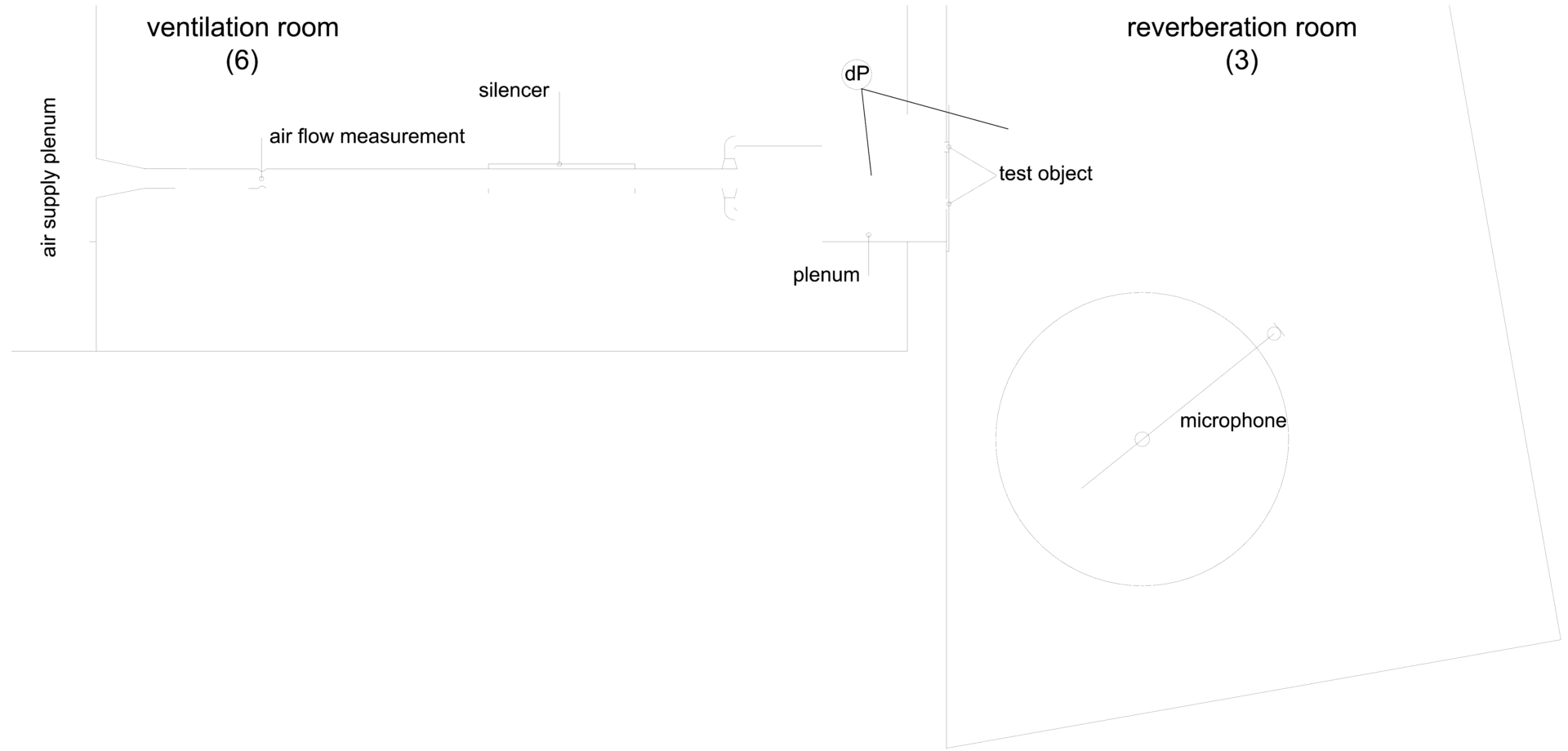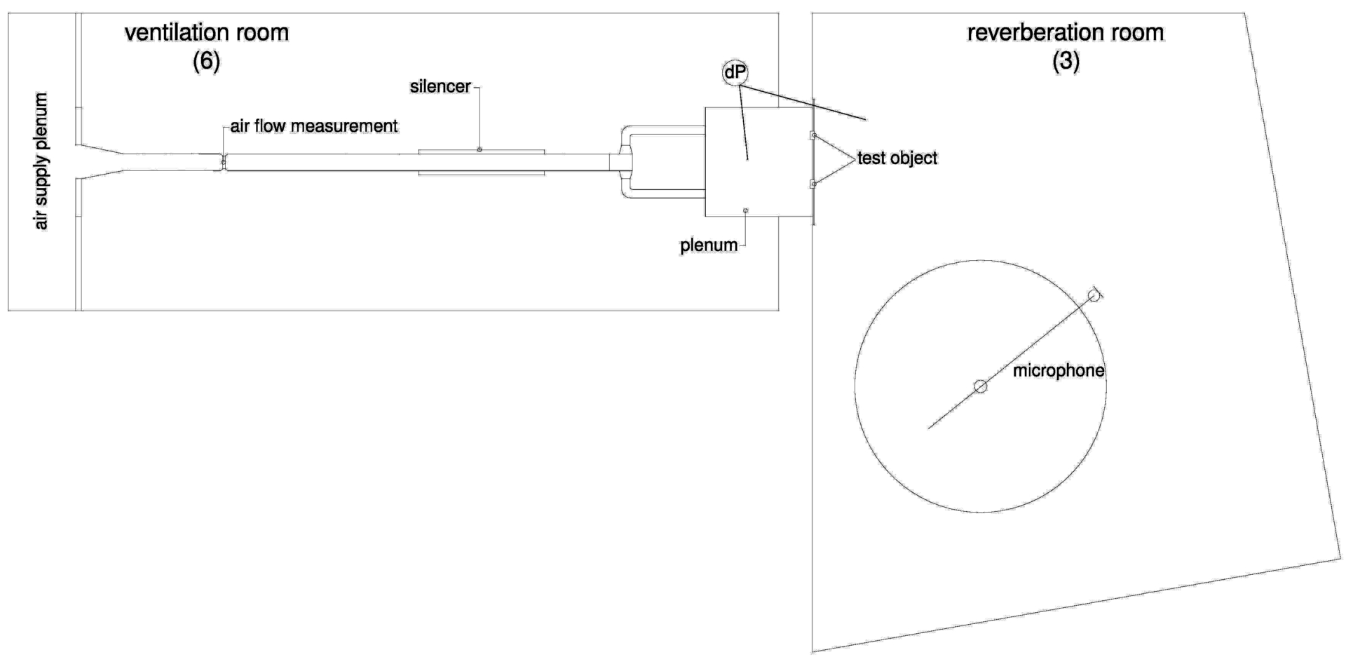 Bijvoorbeeld: Het te onderzoeken object is een geluiddempende luchtbehandelingsslang. De te onderzoeken slang wordt gemonteerd tussen twee meetkanalen van een voorgeschreven minimale lengte, eventueel met tussenvoeging van (eveneens voorgeschreven) verloopstukken. Aan het ene uiteinde van deze opstelling komt een luidsprekersysteem, het andere uiteinde mondt uit in de nagalmkamer. Het door de luidspreker veroorzaakt geluidniveau in de nagalmkamer wordt gemeten in twee situaties. Als de te onderzoeken slang aanwezig is en als de slang vervangen is door een kanaalstuk (een dummy) met dezelfde afmetingen en lengte als de slang.