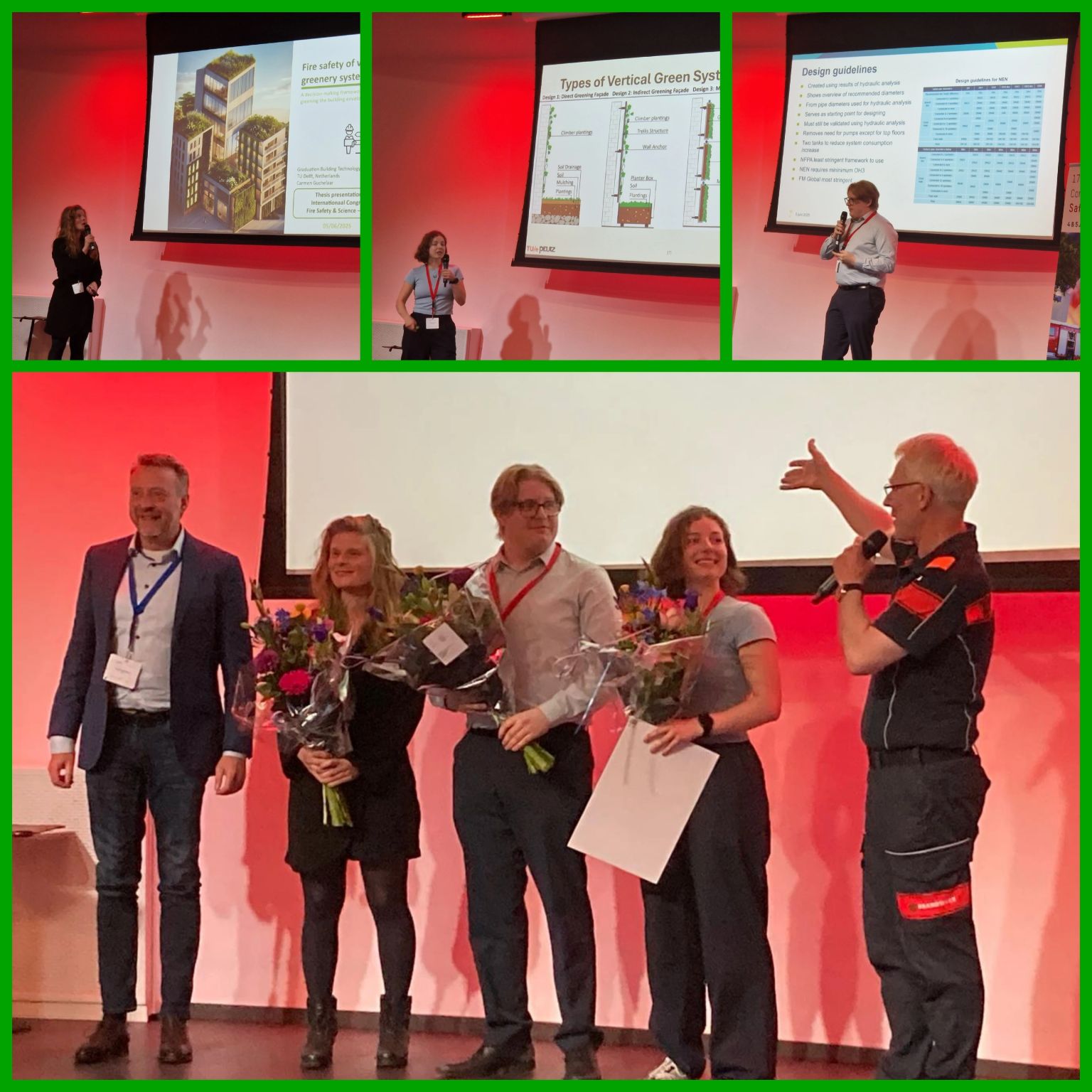 De jury prees het sterke wetenschappelijke karakter van haar werk, waarin experimentele brandtesten zijn gecombineerd met geavanceerde computersimulaties. Daarmee biedt de scriptie waardevol inzicht in hoe groene gevelsystemen zich gedragen bij brand. De resultaten leveren belangrijke data voor vervolgonderzoek op het gebied van brandveiligheid en duurzaamheid.