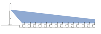 Om de akoestiek zo min mogelijk aan te spreken, is gebruik gemaakt van zuil-luidsprekers waarbij via digitale filtering een hele smalle openingshoek kan worden gerealiseerd, ook wel Beam Steering genoemd. Door de beam steering wordt een zogenaamde lob gerealiseerd die op oorhoogte op de reizigers wordt gericht. Met dergelijke systemen kunnen afstanden tot wel 70m worden overbrugd met een gelijkmatig geluidsveld van voor tot achter. Een principe wat al sinds de jaren 80 door Peutz is ontwikkeld en toegepast op Schiphol en nog altijd actief is in Vertrekhal 3. Met dergelijke systemen komt de meeste energie op het gebied waar het nodig is (bij de reizigers) en gaat er zo min mogelijk energie naar het plafond, waardoor de nagalmtijd van de ruimte minimaal wordt aangesproken.